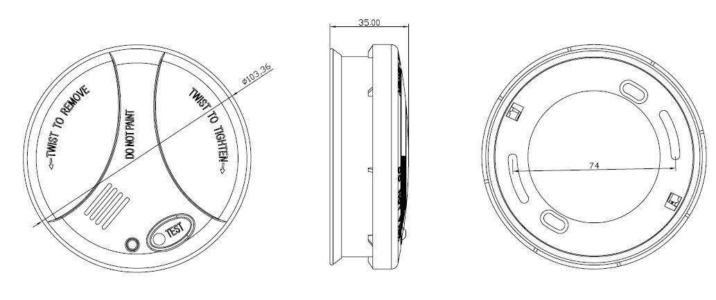 3, juster klemmene til installasjonspanelet til detektors hakkene og vri røykdetektoren med urviseren for å feste den;